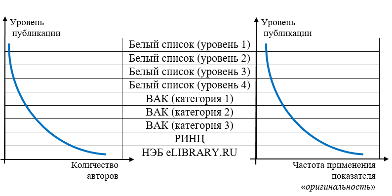 Введённые НЭБ меры негативного стимулирования редакторов научных журналов неизбежно повлияли на их взаимоотношения с авторами публикаций [16]. Как следствие, ужесточение требований редакций на практике проявилось не в повышении научной новизны, теоретической и практической значимости результатов исследований, а в выполнении формализованных технократических требований в виде роста значимости критерия «оригинальность» при проверке в системе «Антиплагиат».